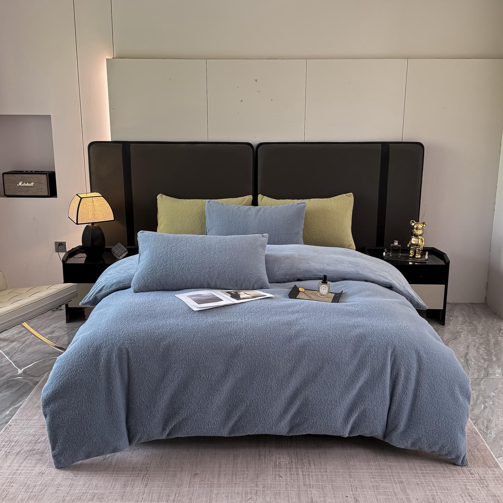 Lenjerie de pat 4 piese Cocolino Catifea blue – LCC02B, din microfibră plușată, moale și călduroasă. Include husă pilotă 200×230 cu fermoar, cearceaf cu elastic 160/180×200 și 2 fețe pernă 50×70. Perfectă pentru confort și eleganță în sezonul rece.