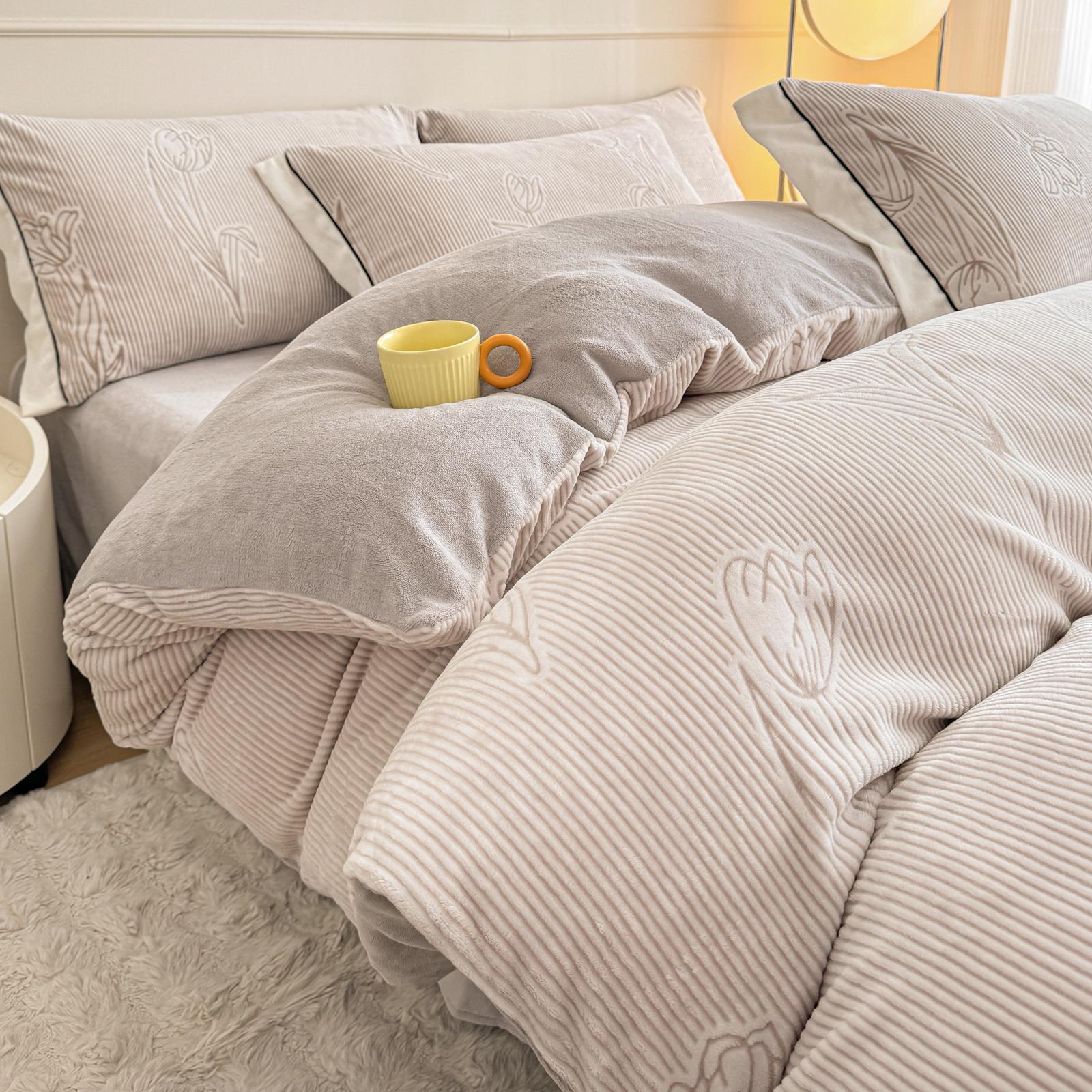 Lenjerie de pat 4 piese Cocolino model Flori - gri, realizată din microfibră plușată, moale și călduroasă, ideală pentru nopțile reci de iarnă. Modelul floral în relief 3D adaugă un efect elegant și modern, transformând dormitorul într-un spațiu primitor.