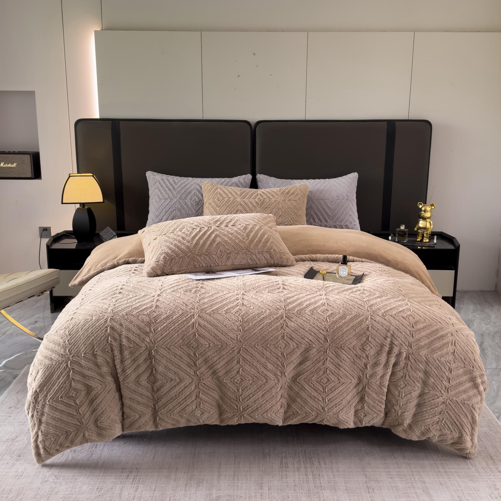 Lenjerie de pat 4 piese Cocolino Spic maro – LCS05M, din microfibră plușată, moale și călduroasă. Include husă pilotă 200×230, cearceaf cu elastic 160/180×200 și 2 fețe pernă 50×70. Perfectă pentru confort și eleganță în sezonul rece.