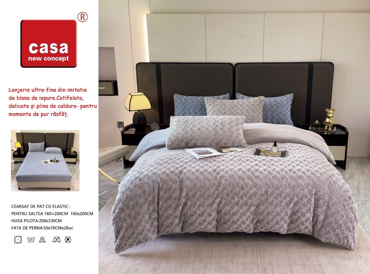 Lenjerie de pat 4 piese Cocolino Trandafir gri – LCT05G, din microfibră plușată, moale și călduroasă. Include husă pilotă 200×230 cu fermoar, cearceaf cu elastic 160/180×200 și 2 fețe pernă 50×70. Perfectă pentru confort și eleganță în sezonul rece.