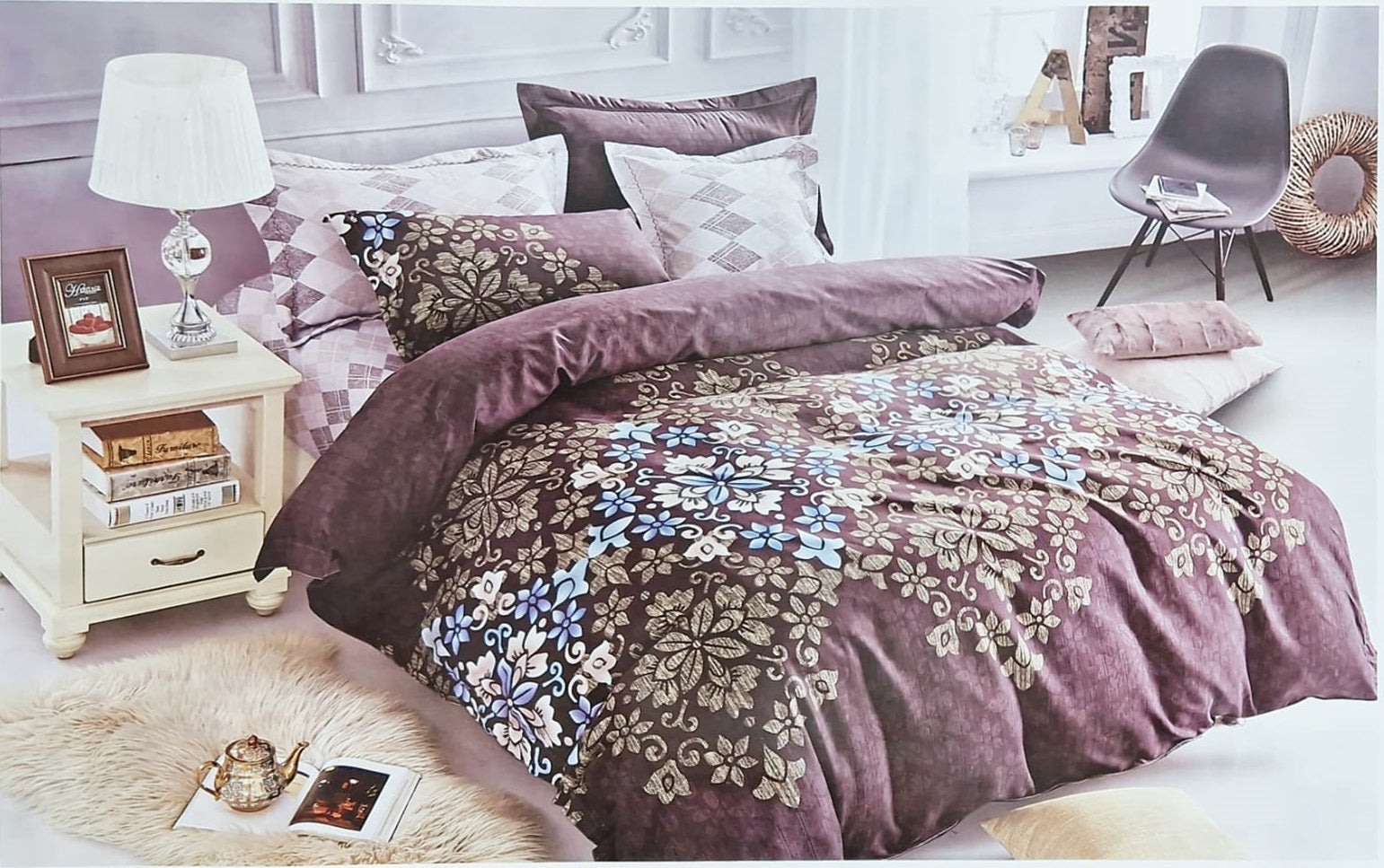 Set Lenjerie de Pat 4 Anotimpuri cu Cuvertură Matlasată – Microfibră, 4 Piese, SA-2